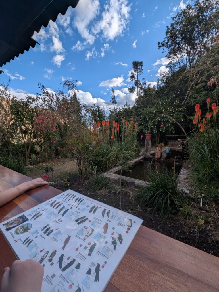 Hummingbird watching took place in a local’s backyard, bursting with colorful flowers. We settled on the porch, armed with a bird identification map and a couple of flower rings filled with sugar water, and waited. After a while, we were delighted by numerous hummingbirds of all sizes and colors. The kids took turns holding the flower rings, each greeted by a hungry bird. We enjoyed it so much that we hope to create something like it ourselves one day.
